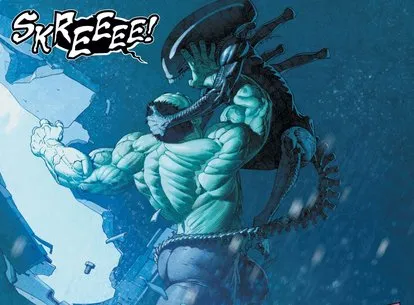 And between that stuff, Alien Vs. Avengers is still playing the crossover standard of unexpected but retrospectively obvious mashups: A Weyland-Yutani corporate takeover of Stark Industries, the Venom symbiote taking a facehugger as a host before it can kill a human, and evolution-obsessed X-Men villains like Apocalypse and Mister Sinister finding their own terrible meanings in the xenomorph species.