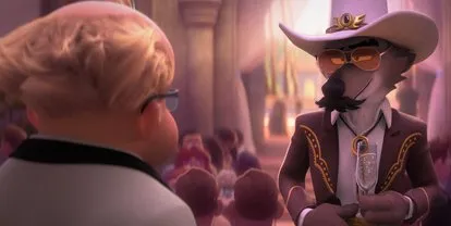 这次的主要目标是“伊隆”,当然名字不是这样,但Mr. Moon(由科林·约斯配音)毫无疑问是一位艾隆·穆斯克的模仿角啬。这位古怪的科技大亨拥有一家公司(Moon X,灵感源自SpaceX),热衷尖端科技,既富有又自负,喜欢与财力雄厚的人交流。而他对科技的狂热,也成为影片一个轻松的笑点。值得一提的是,片子早在三年前的筹备期就已开始策划,远早于《坏家伙》上映前的设定。